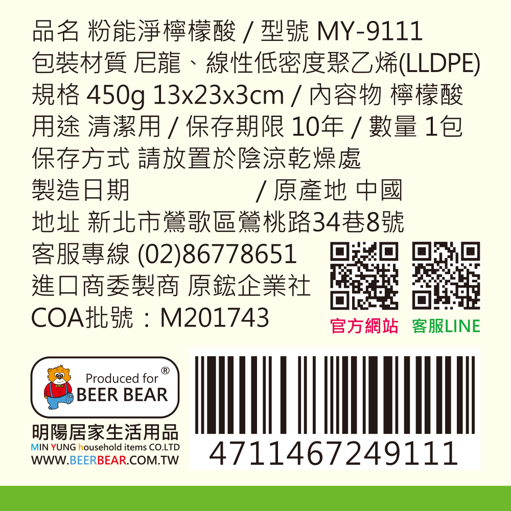 MY-9111 粉能淨檸檬酸-450g